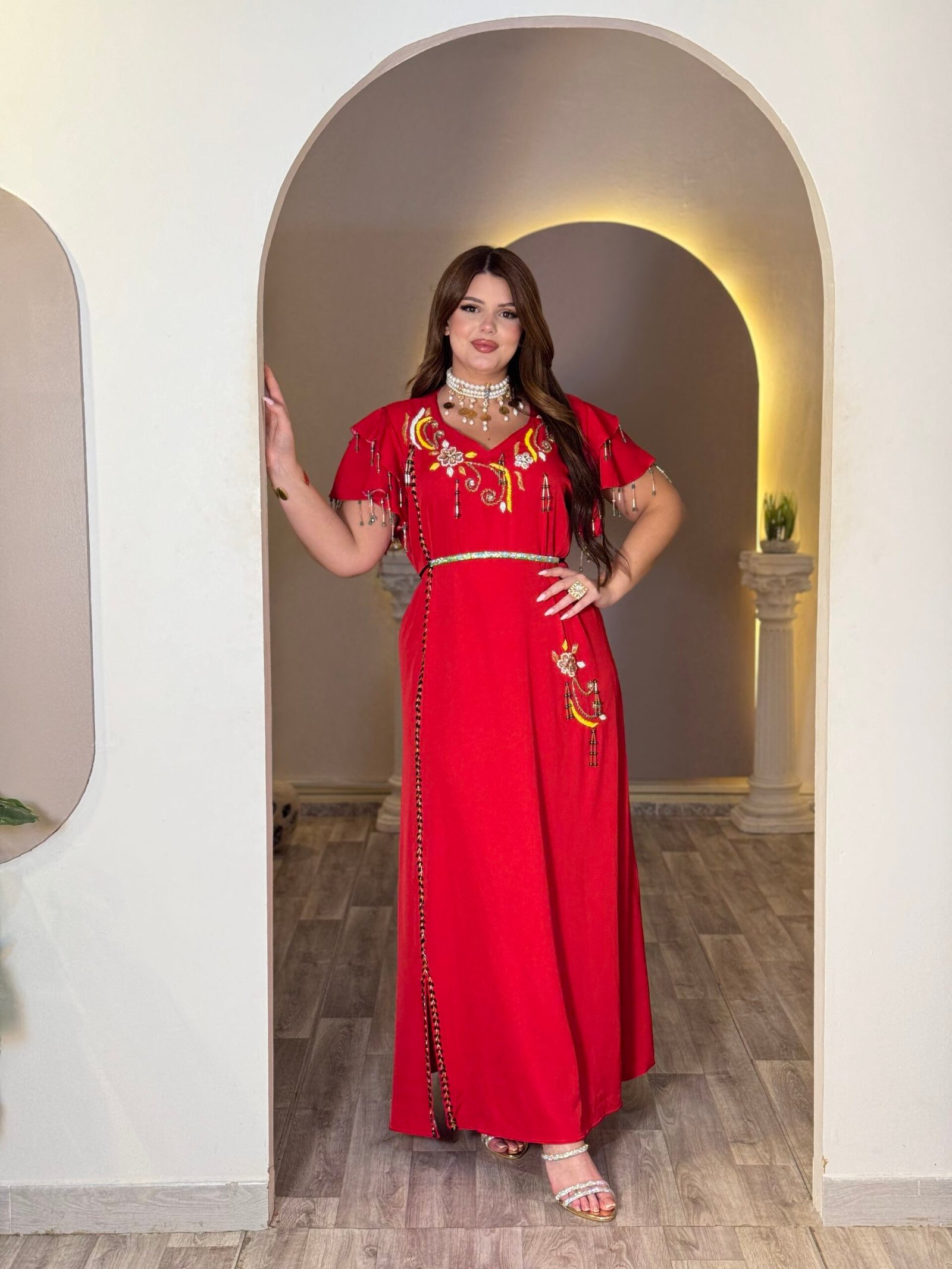 Robe d’hôtesse perlage à la main